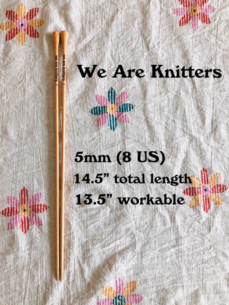These needles are 14.5” in total length, with 13.5” in actual workable length. Their website states differently, but I like squishing stitches as far as I can. 🤣