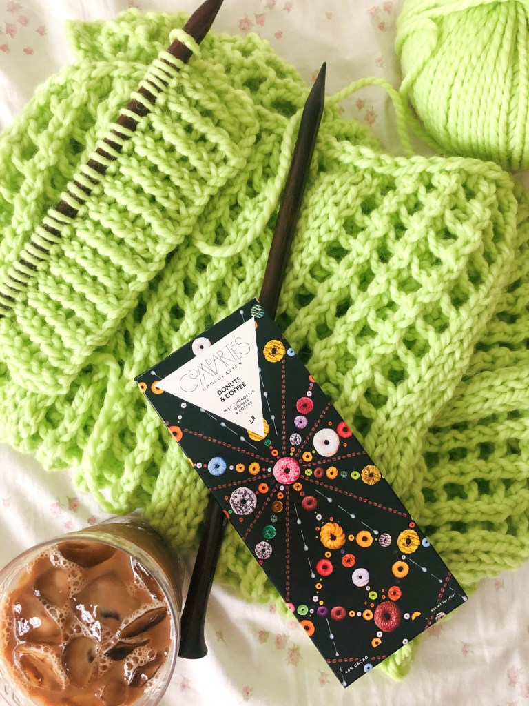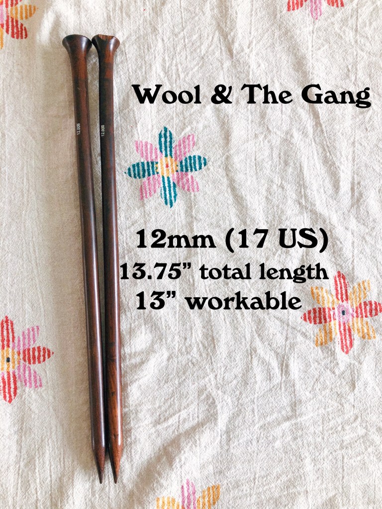 Next up is the 12mm knitting needles from Wool and The Gang. These needles I tend to use mostly for ribbing. The Winter Magic sweater uses these needles for just a few rows. I believe my only full sweater knit with these needles is my Bring Me Coffee Cardi which kind of makes for the same concept as using my 25mm needles with the super chunky yarn. The texture and softness just shines through!