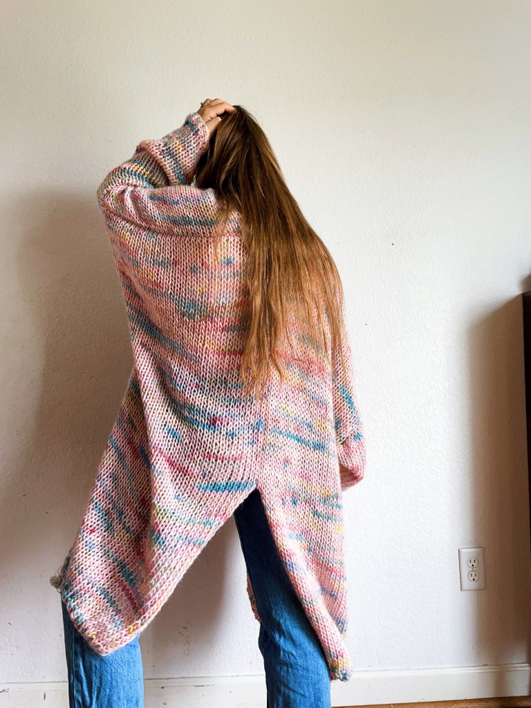 I basically first had the idea for this back design. I really wanted a long cardigan with a slit up the back. And when I figured out the method to do that, the rest fell into place.