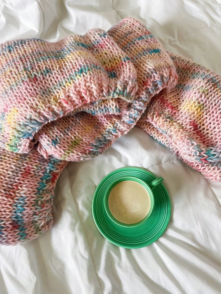You cannot go wrong with yarnicorn. You really cannot. This yarn shade from We Are Knitters is just stunning. If you’ve been following me for awhile, you know I love it. My winter magic sweater, my lost road trip cardigan, and now the September Dreams cardigan have all been knit with it. This time, instead of “the wool”, it’s knit in the petite wool. A lighter yarn, just as warm and cozy!