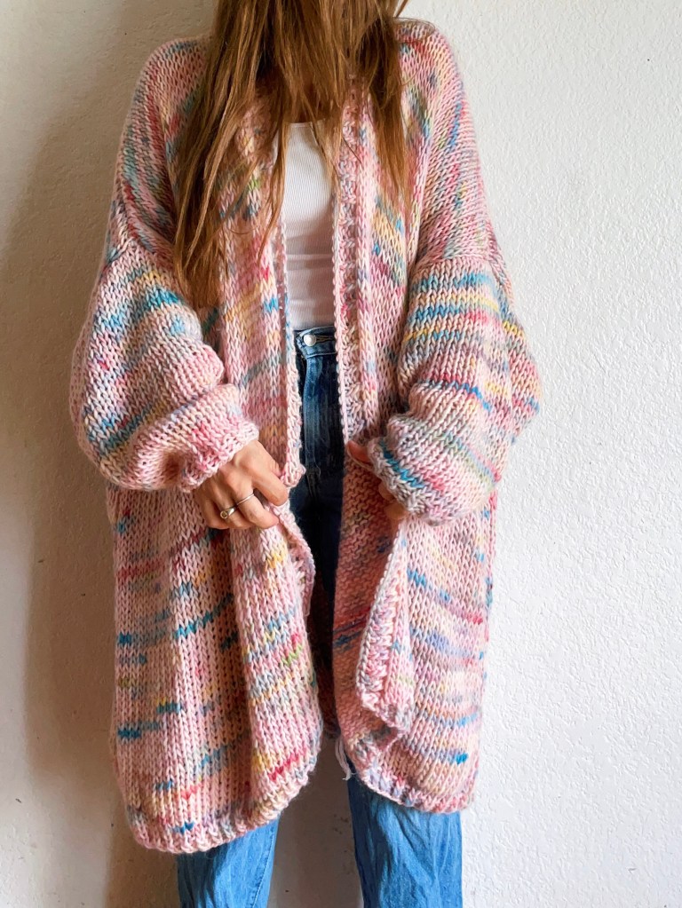 This cardigan is a knit that’s perfect for beginners wanting to learn a couple extra skills. The ribbing is knit in a 1×1 twisted rib, the body pieces are knit in your standard stockinette stitch, and you’ll pick up stitches for your edging around the front.