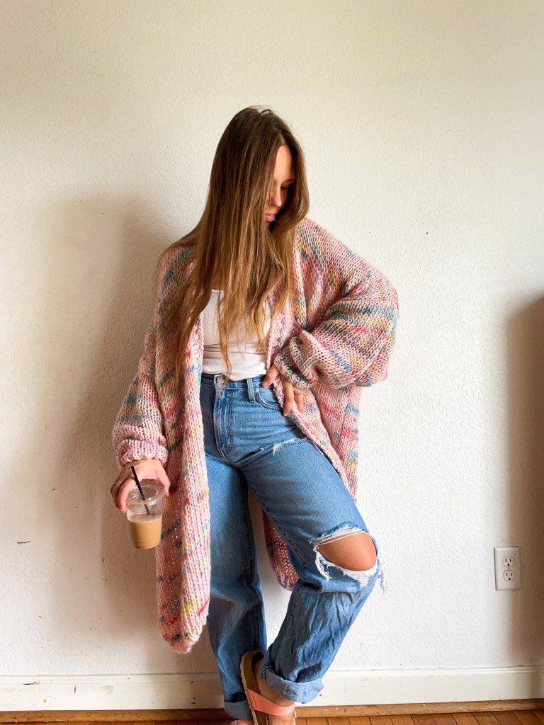 It’s got the coziness of a blanket and robe together. It’s the perfect fall piece. Strolling the pumpkin patch, sipping on your pumpkin coffee. In my case, always the iced. I wonder if I’ll ever try a warm coffee.