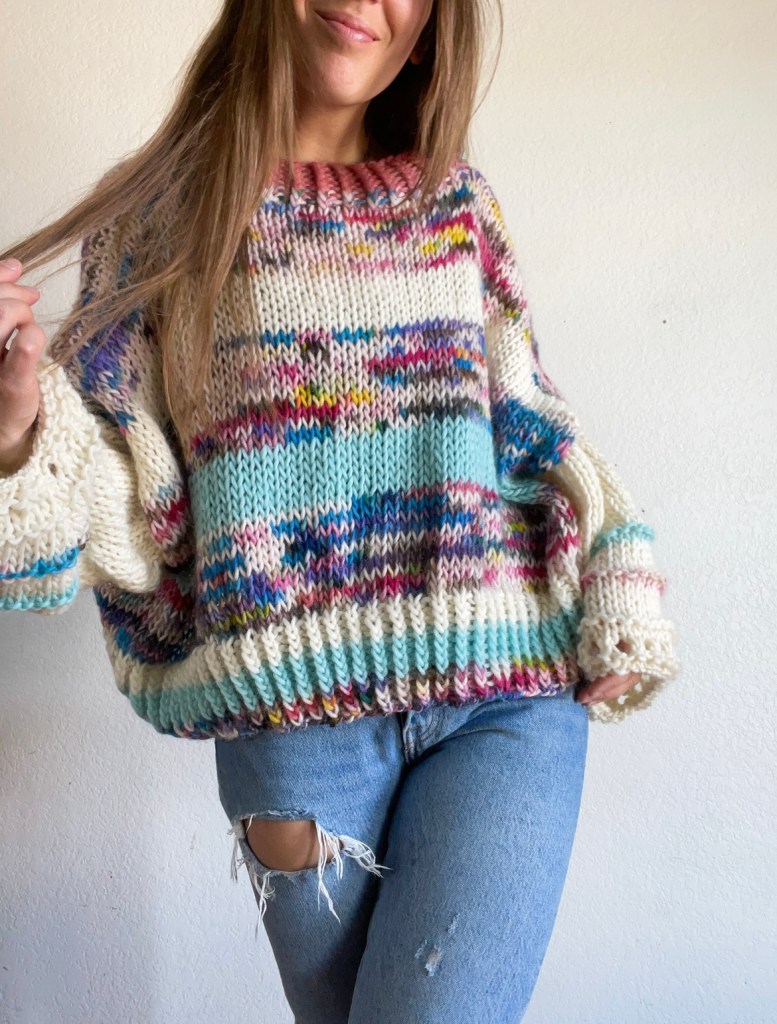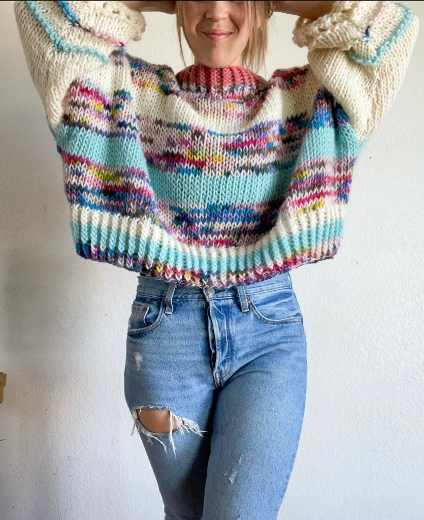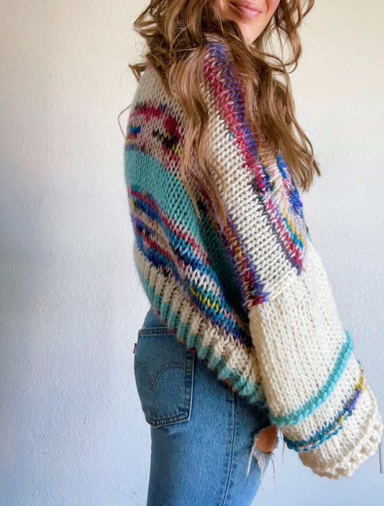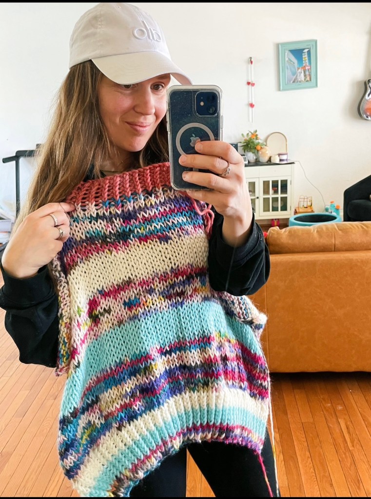This sweater follows along with all my other sweater vibes. Oversized, cozy, and colorful. I just can’t stray away from it! If you’ve followed me for awhile, you know I’ve tried. I’ll set out on a piece like, this is going to be one color and basic. It always changes en route. 😂