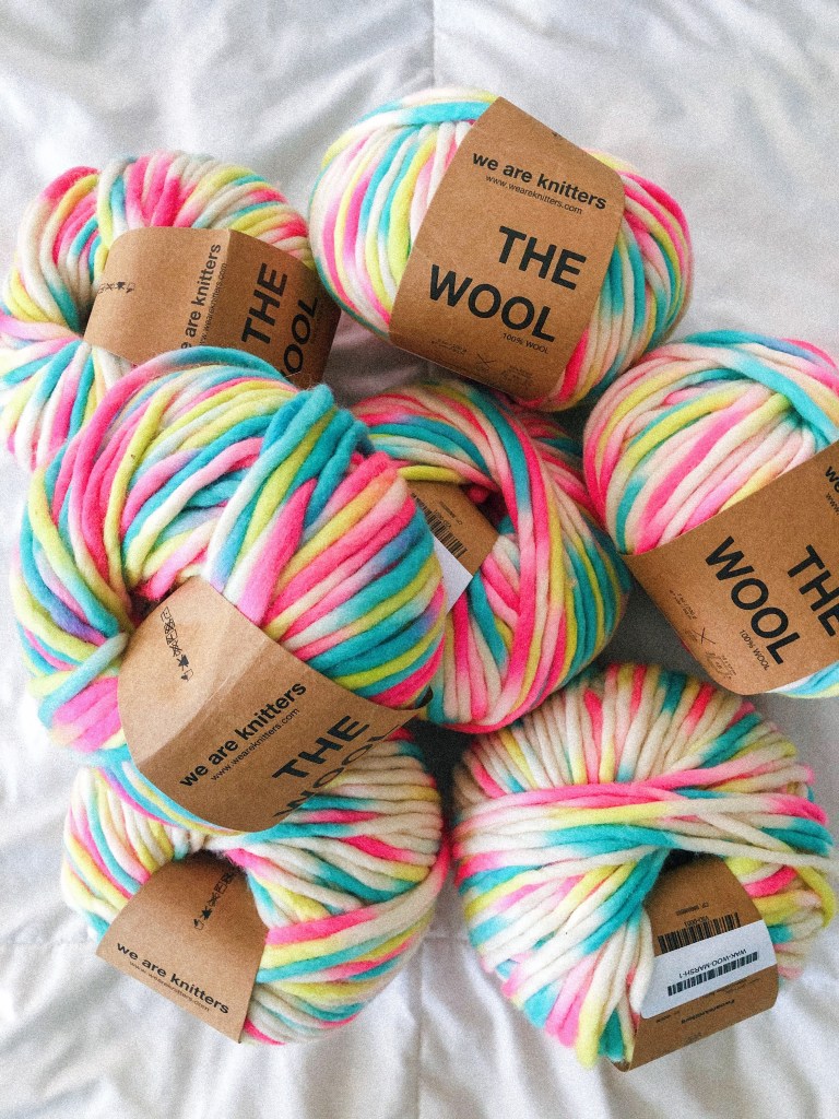 My very top color way and choice is by far We Are Knitters “the wool” in the color way yarnicorn. It’s a fav of everyone. It sells out super quick every time they restock it and I highly recommend getting on their email list so you can snag a few skeins when it’s available! This yarn is so breathtaking that you could honestly knit anything and it’s going to be spectacular. It’s that good.