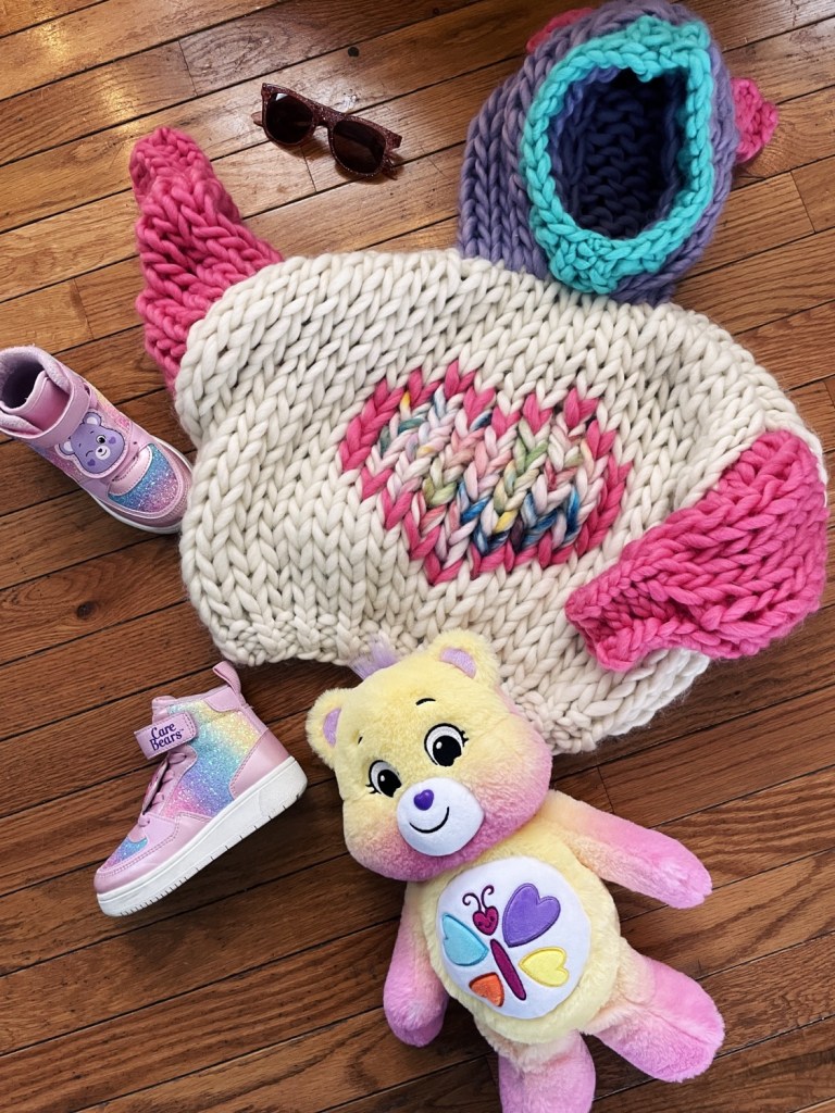 This sweater is perfect for the ending of winter and leading to spring. This time of year, the wind will often be ever present. Spring will bring warmer days, but then we have the wind. The older kids can manage, but this age isn’t too fond of holding something on their head. I designed the ribbing on this hood in a more fitted manner, so the stay factor is strong. It will not fall off. We tested it running outside and I was quite happy! Then, when it’s pulled down, it creates a nice little mini cowl, perfect for keeping the neck warm.