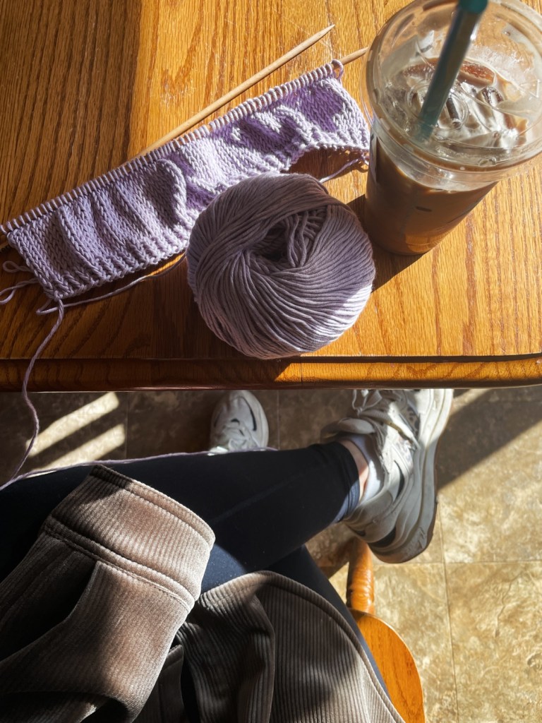 I had brought along a purple skein of We Are Knitters “the cotton” to Minnesota and hadn’t thought much of it for the first couple days I was there. Too busy doing Target and coffee runs tbh. But then I booked a Florida trip because ticket prices were insanely low, which led to searching for some clothes for the trip, which led to casting on stitches for a purple tank top.