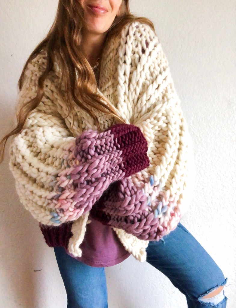 My latest design, the sugarplum fairy ribbed cardigan! I am absolutely in love with this one. It’s oversized, super soft and cozy, and a quick knit thanks to the large needles! I always prefer knitting this wool with larger needles as it really allow the softness and beauty of the yarn to shine through. And when you need a new cardigan in as little as a few days, it’s a win win.