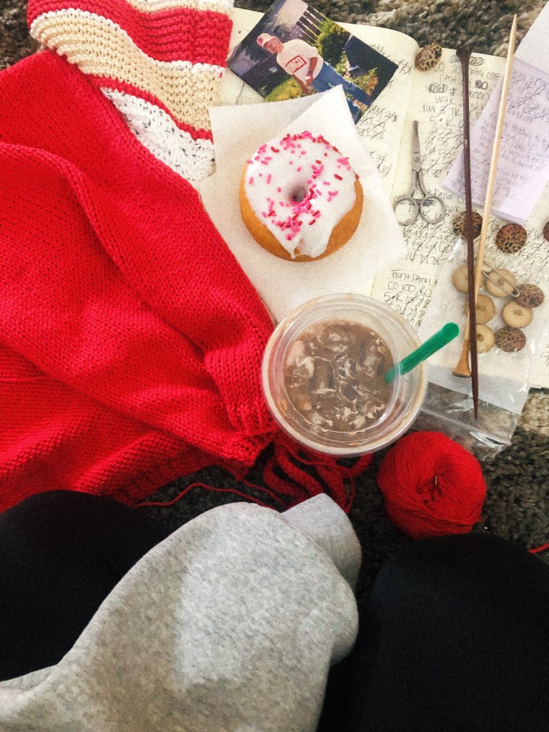 This sweater is fairly easy to knit. The ribbing is a basic twisted rib. Which, if you’re not familiar with, is knitting and purling through the back loops. It’s super easy and gives it a pretty braided look. I always always use twisted rib! After the ribbing comes a little bit of mesh stitch, or holey stitch, I’ve seen it called a few different things. Then the remainder is knit in your basic stockinette stitch! Nothing complicated. The sleeves have a few increases, and that’s about it! A beginner knitter can knit this sweater. 😊