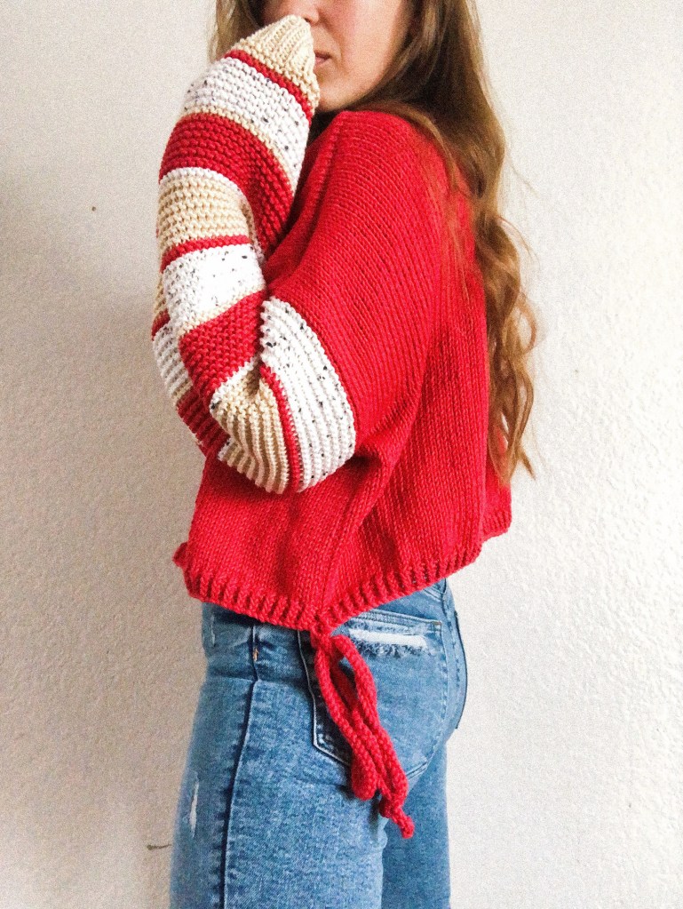 Spring is coming! Happy days. I decided to do one last oversized chunky knit to end the winter season. I’m not sad about winter leaving, but knitting these super fast knits on big needles was a big upside to winter. The Kels Marie sweater took about eight hours to knit! When you’re short on time, but really really need a new sweater, this is how you do it. Grab your big needles, 25mm (US 50), some big super chunky weight yarn, and get busy!